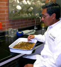 Participa en el proyecto de investigación: Los insectos como una fuente de proteínas en el futuro. Es responsable de las Cámaras de cultivo de insectos (Insectario) y se encarga del cuidado, mantenimiento y enriquecimiento de los cultivos de insectos (Tenebrio molitor y Periplaneta americana), así como de tamizar, separar, pesar, secar, etiquetar y almacenar el material insectil manteniendo su orden. Colabora en la preparación de experimentos diversos, separando y contando insectos y elaborando las dietas de los mismos. Colecta insectos comestibles y/o medicinales en algunos Estados de la República Mexicana. Participa en la predeterminación taxonómica, montaje, etiquetado y catalogado de las colecciones de insectos comestibles y medicinales del IBUNAM (seca y húmeda), asimismo colaborar en la elaboración y actualización de la base de datos de ambas colecciones. Efectúa análisis químicos proximales de los insectos colectados, cultivados y/o de sus dietas, colabora en diversos ensayos de alimentación empleando, pollos, ratas, cerdos, avestruces y peces, etc. Participa activamente en la formación de recursos humanos. |